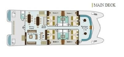 Explore the “Enchanted Islands” on board our M/C EcoGalaxy Catamaran First Class Cruise, built for sailing on the Galapagos Islands preserving its fragile ecosystem, and of course its beauty. The Catamaran social areas are the perfect place to witness the endless wonderful landscapes in a private and intimate atmosphere.
