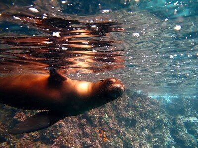 The snorkeling is spectacular in Santa Fe! Playful sea lions invite us to swim. We also observe sea turtles, manta rays, a variety of colorful fish and occasionally sharks.