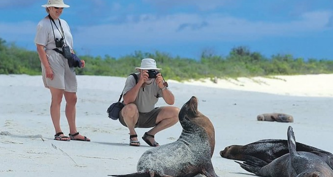 On this tour you will visit an small island located southeast of Santa Cruz. We sail to a beautiful, turquoise bay surrounded by cactus and mangroves. From our boat we see a white-sand beach full of sea lions.