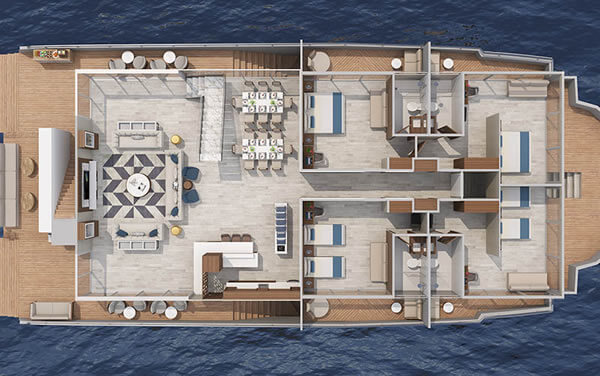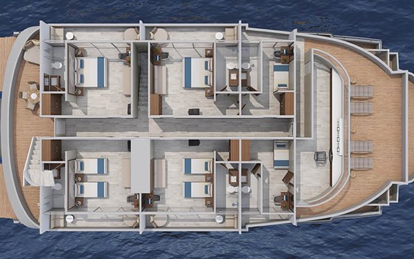 Elite Galapagos Cruise, set to begin operations in Summer 2019, offers guests stunning panoramic views from open-plan decks that make the most of the incredible archipelago. Set out on fascinating journeys of discovery during the day and then take to the Sun Deck’s fresco dining area or the delightful Jacuzzi, surrounded on all sides by comfortable loungers. All Galapagos Elite Cruise cabins feature an ample private bathroom and contemporary design for your enjoyment. Highly-trained guides and staff will make this an unforgettable experience in terms of both learning and creature comforts.