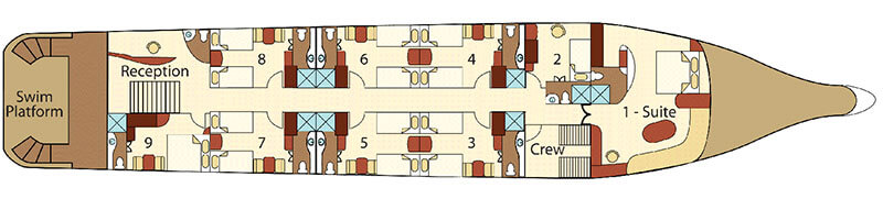 The Integrity Yacht is a 141 ft luxury yacht that provides accommodation for 16 guests in twin, queen or king-bedded rooms. There is also a suite available and one single stateroom. All rooms in the Integrity feature en suite facilities, picture windows, individual climate control, satellite telephone, a stocked refrigerator and an entertainment center with CD/DVD and LCD monitor. On Integrity Yacht, guests can enjoy relaxing and socializing on the sun deck, lounge area, bar or library.